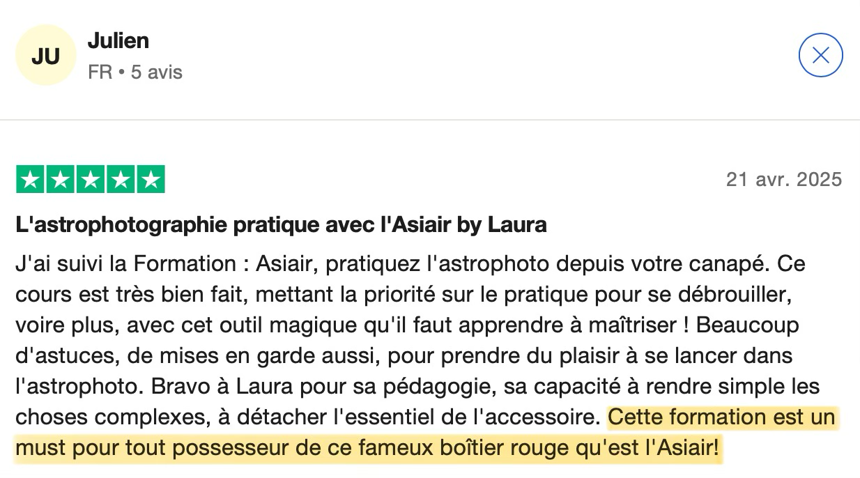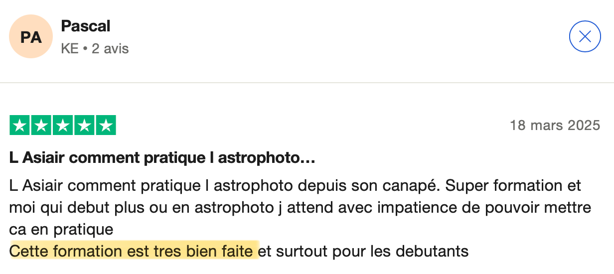 La formation fonctionne que vous ayez un setup simple (télescope + APN) ou avancé (caméra astro, EAF, roue à filtre, autoguidage...). J'ai enregistré des tutos avec les 2 configurations.