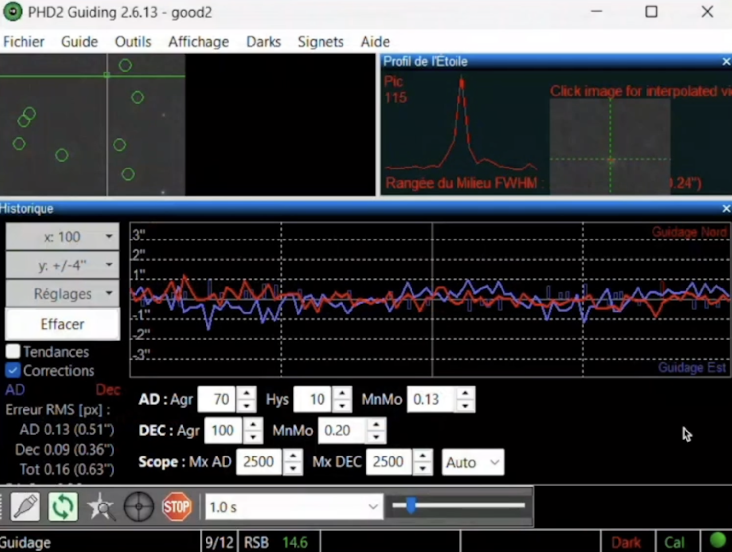 Régler et calibrer l'autoguidage aux petits oignons (via l'Asiair ou PHD2)