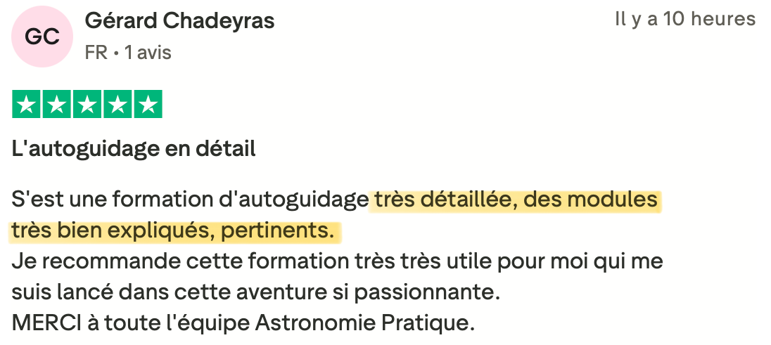 Dans la formation je vous explique tout ce qu'il y a à savoir pour faire du guidage avec le logiciel PHD2 ainsi qu'avec l'Asiair.