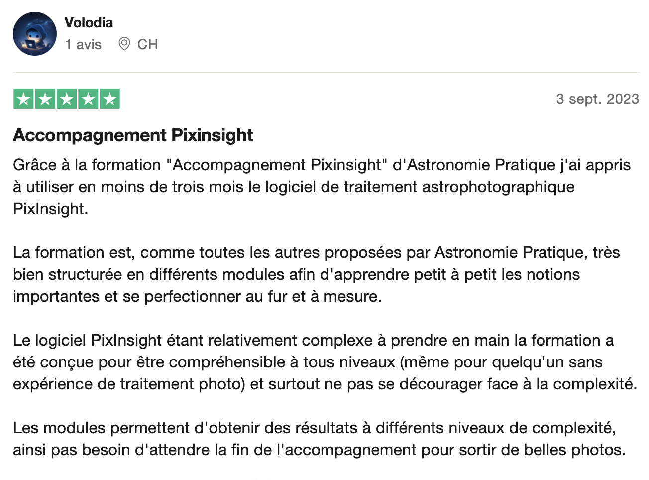 MAIS si vous voulez utiliser Pixinsight pour l'intégralité du traitement, je vous montre aussi comment faire dans la formation.